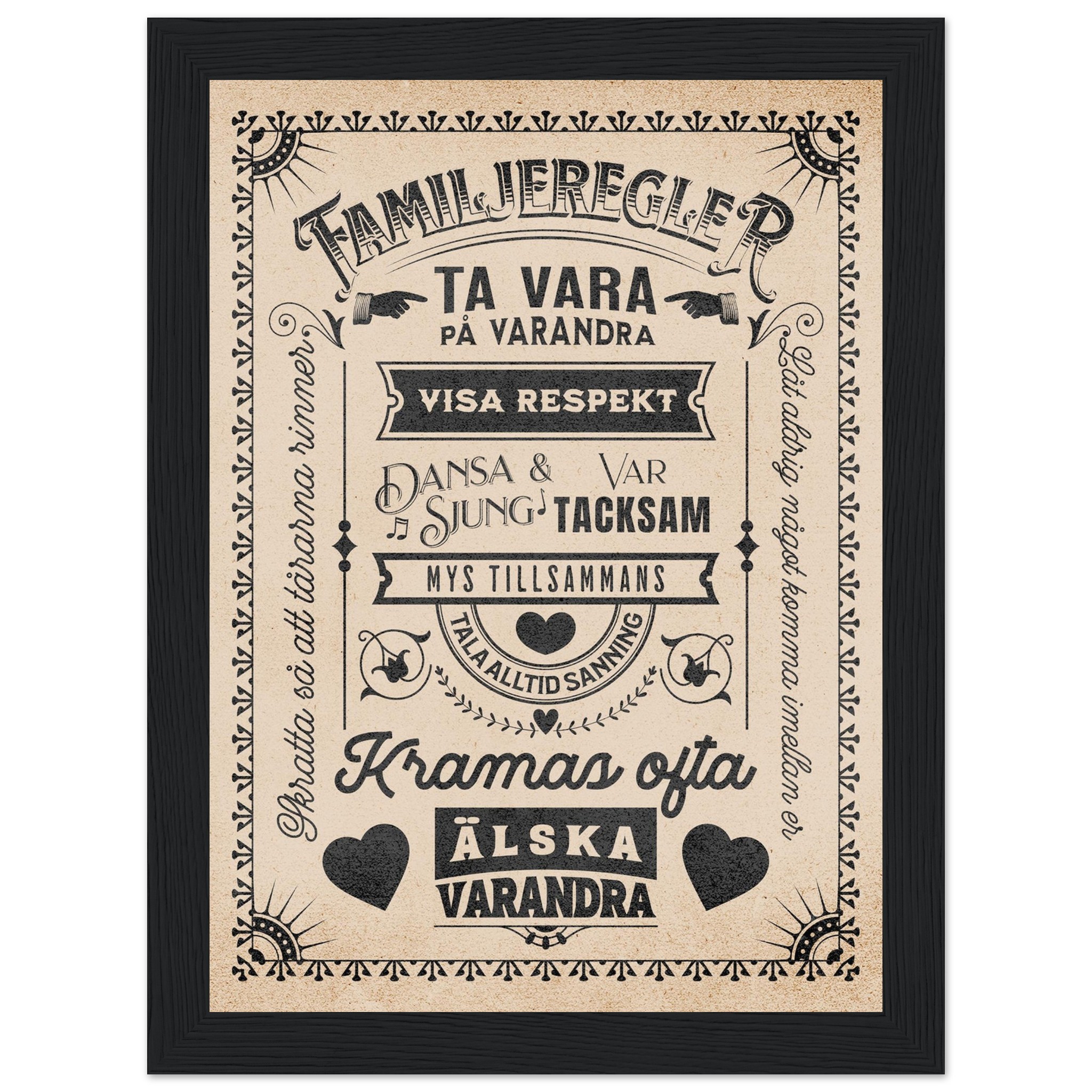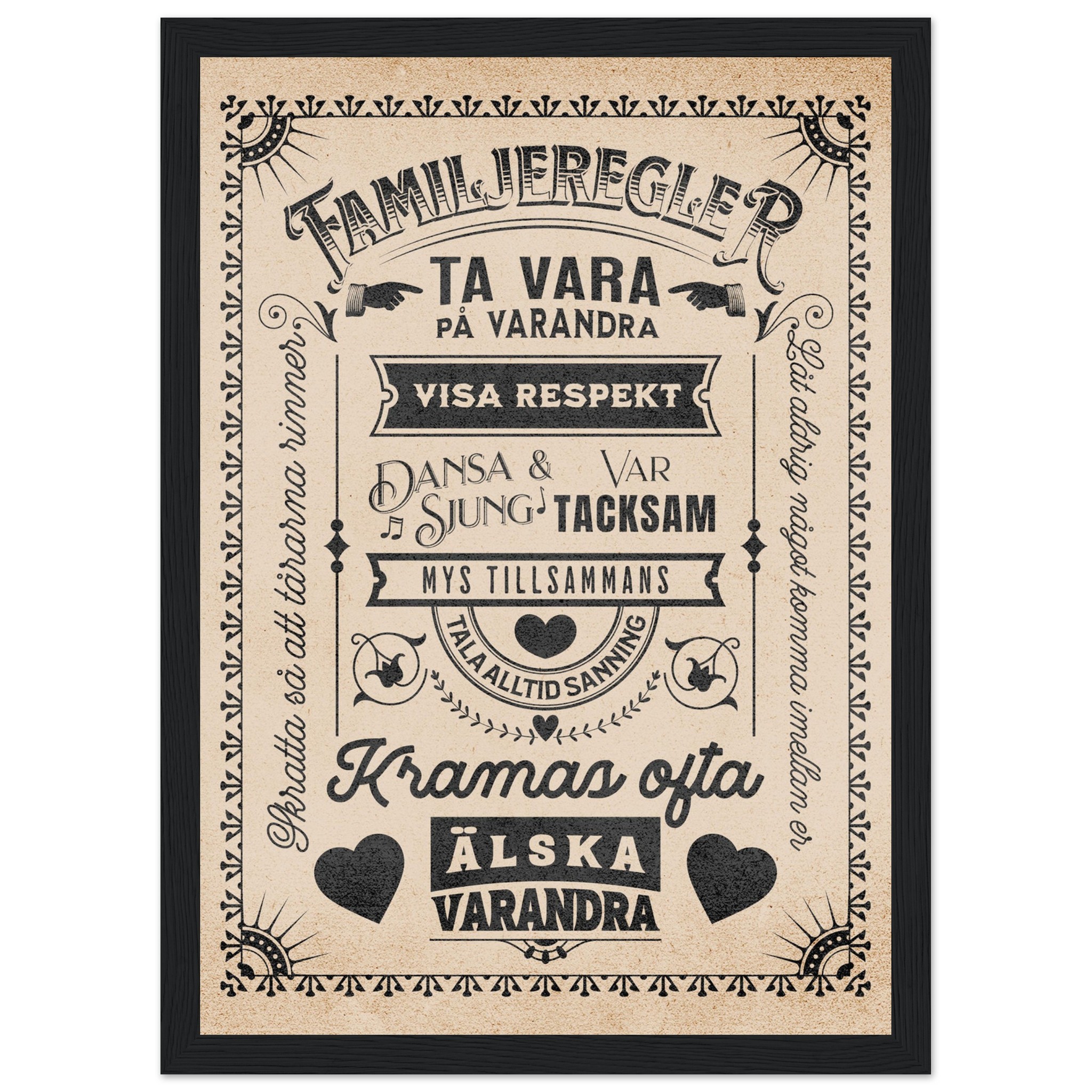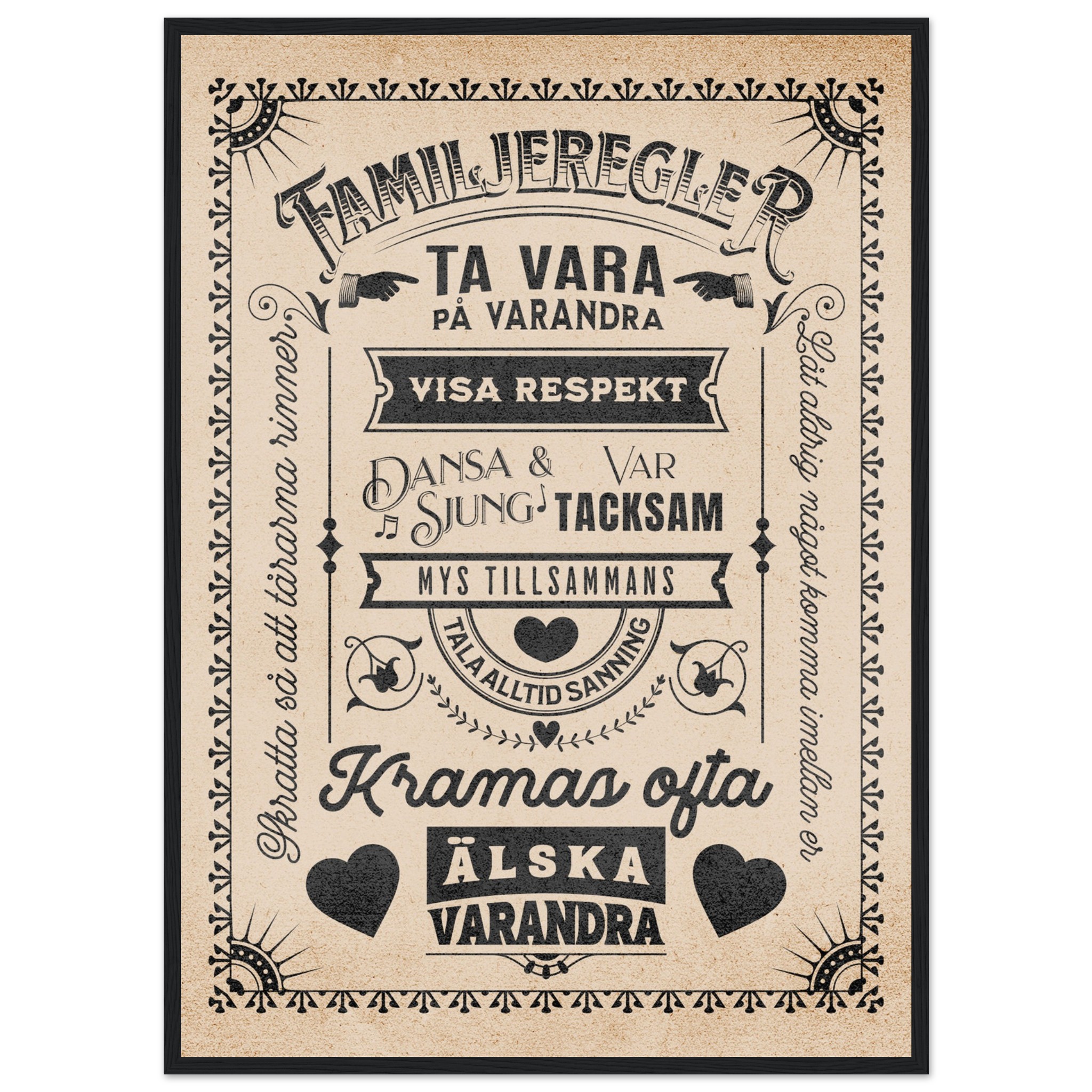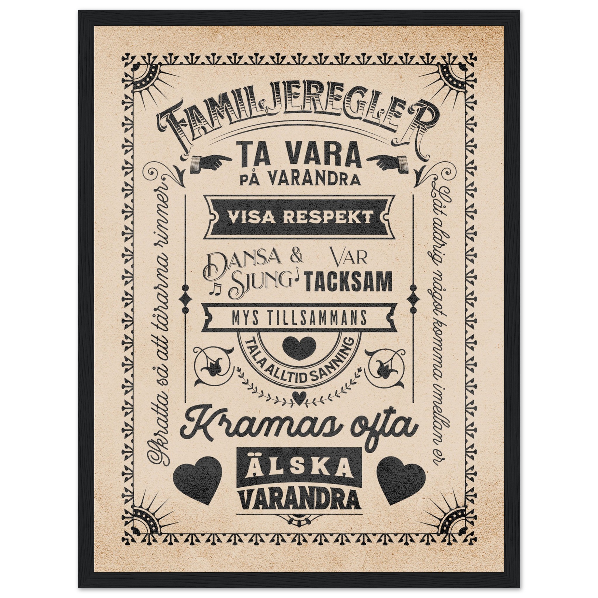 Många av oss bär dessa grundläggande familjeregler i hjärtat, men ibland behöver vi en vacker påminnelse på väggen. Denna poster är designad i en retro/vintage-stil och innehåller tidlösa regler som ”Älska varandra”, ”Visa respekt” och ”Ta vara på varandra”. Ett perfekt tillskott för att sprida värme och kärlek i ditt hem.
