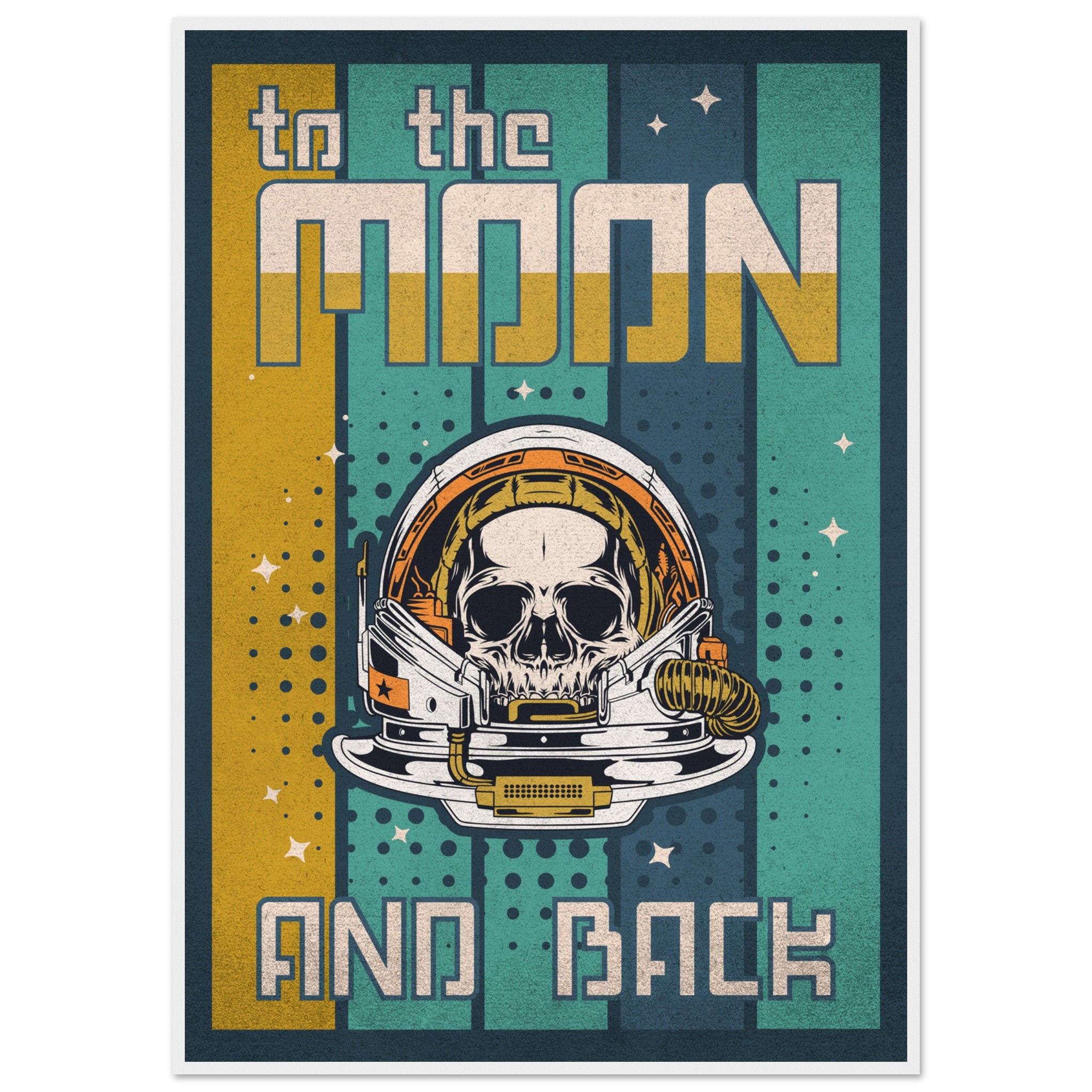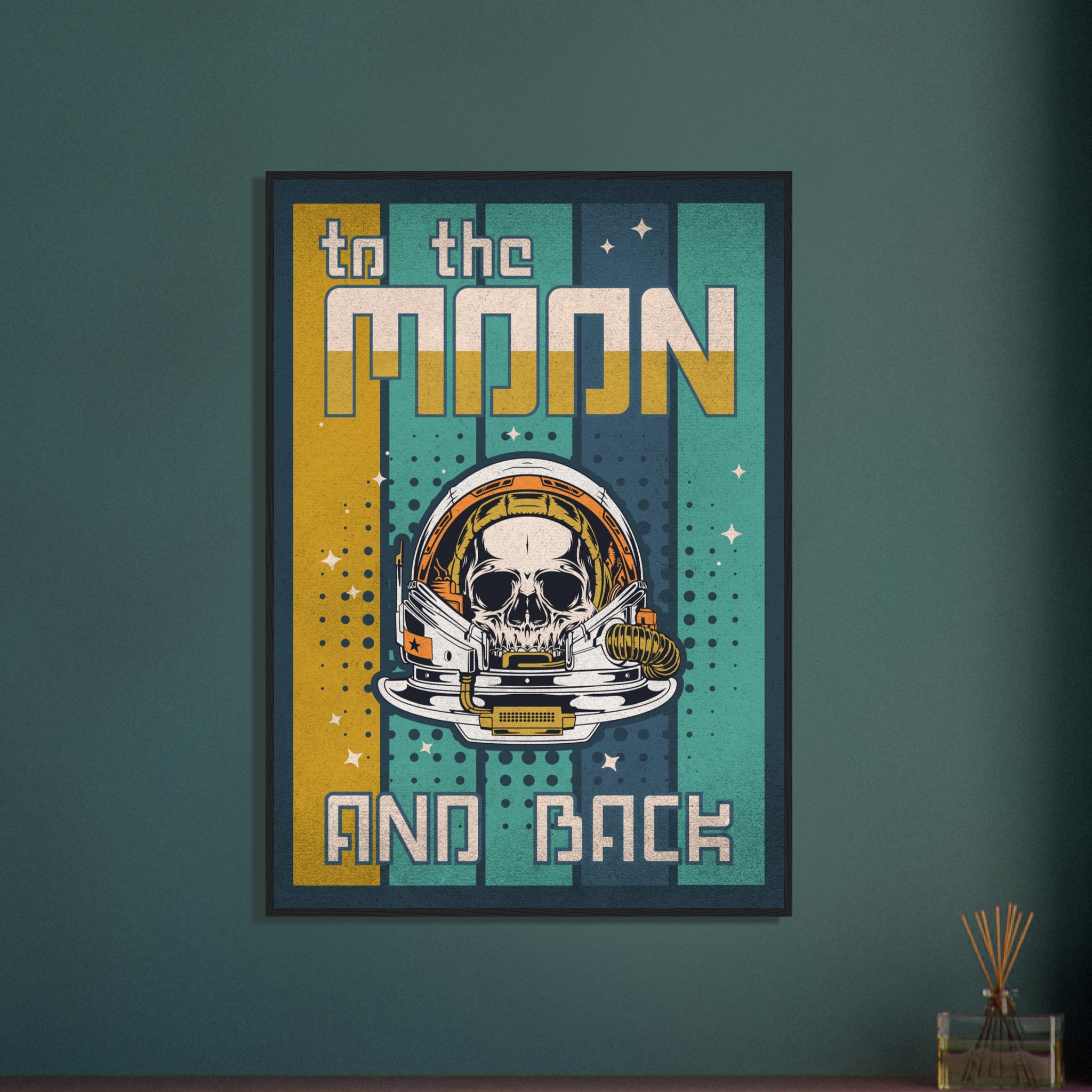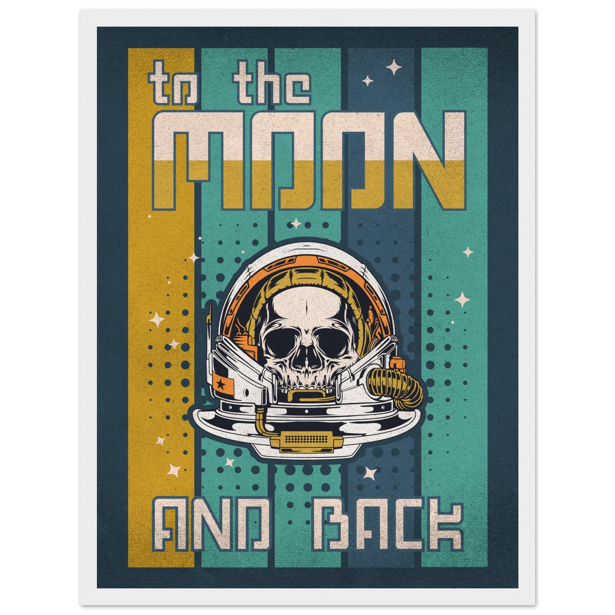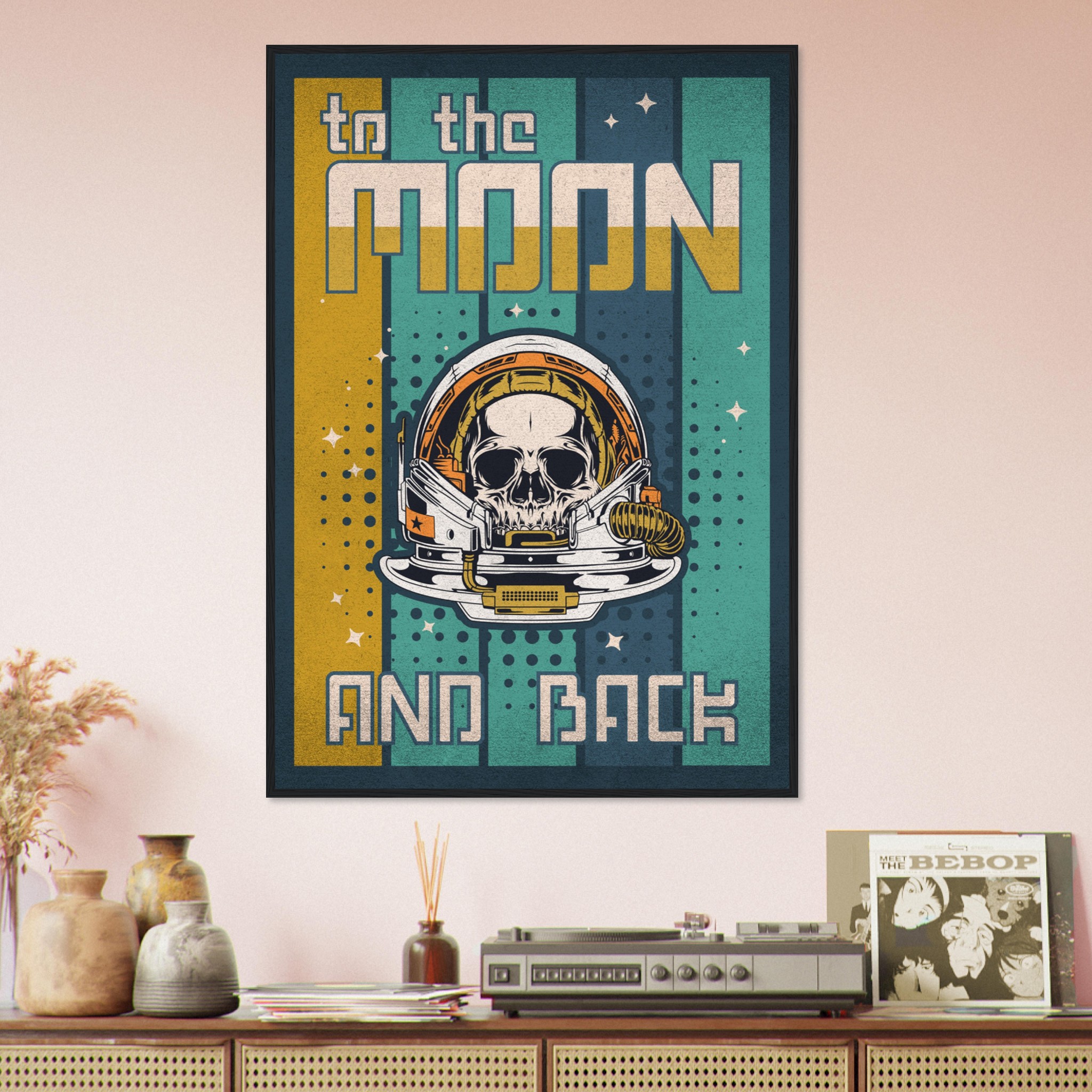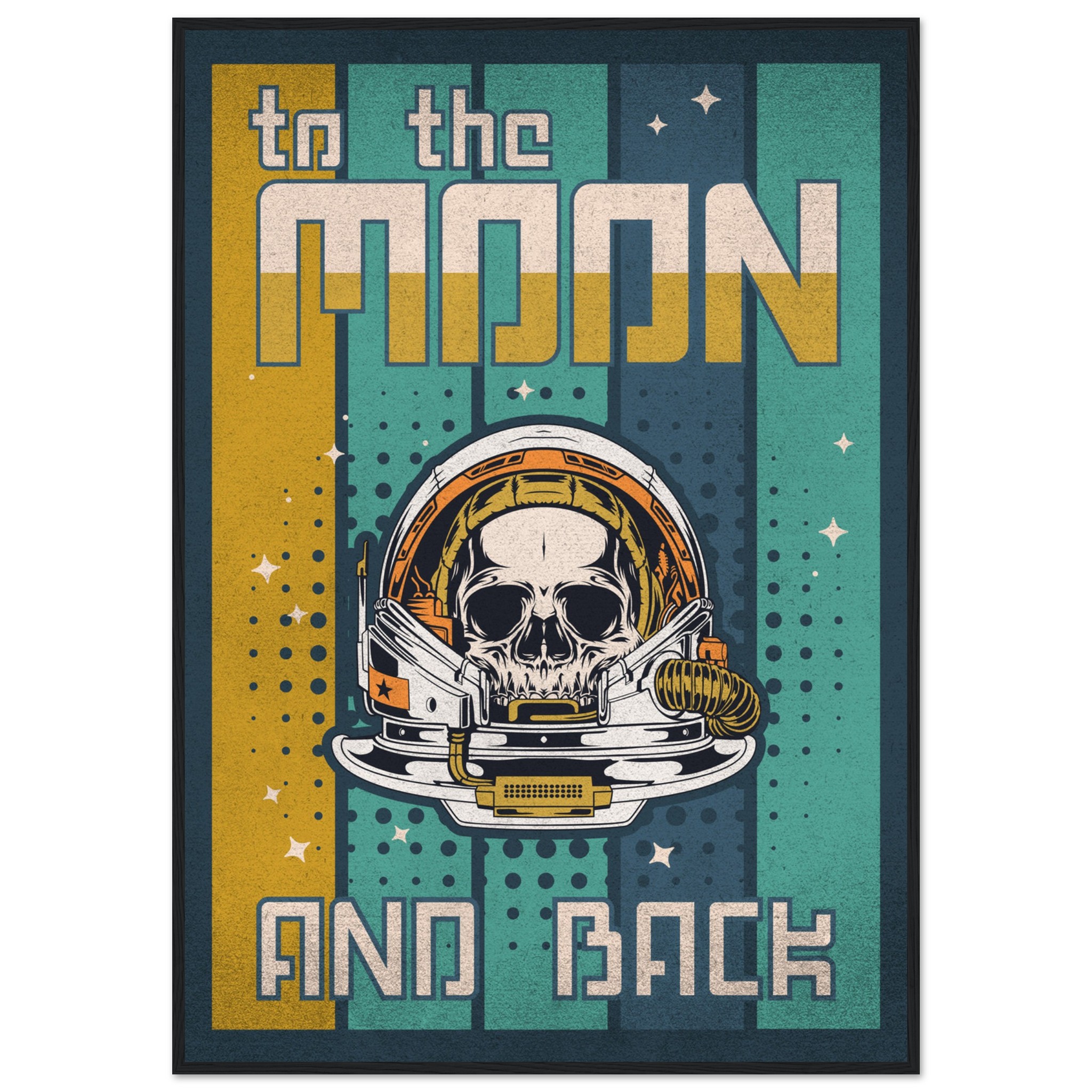 Denna unika och tankeväckande affisch med texten ”To the Moon and Back” kombinerar rymdutforskningsteman med en oväntad skalle inuti en astronautdräkt, vilket ger en dystopisk eller alternativ vändning på klassiska rymdäventyr. Designen leker med kontrasten mellan liv och död, utforskning och det okända, och presenterar en djärv grafisk stil som kompletteras av en retrofärgpalett. Detta konstverk skulle kunna vara en diskussionspunkt i alla moderna eller eklektiska inredningar och ett måste för samlare som uppskattar en mörkare estetik.