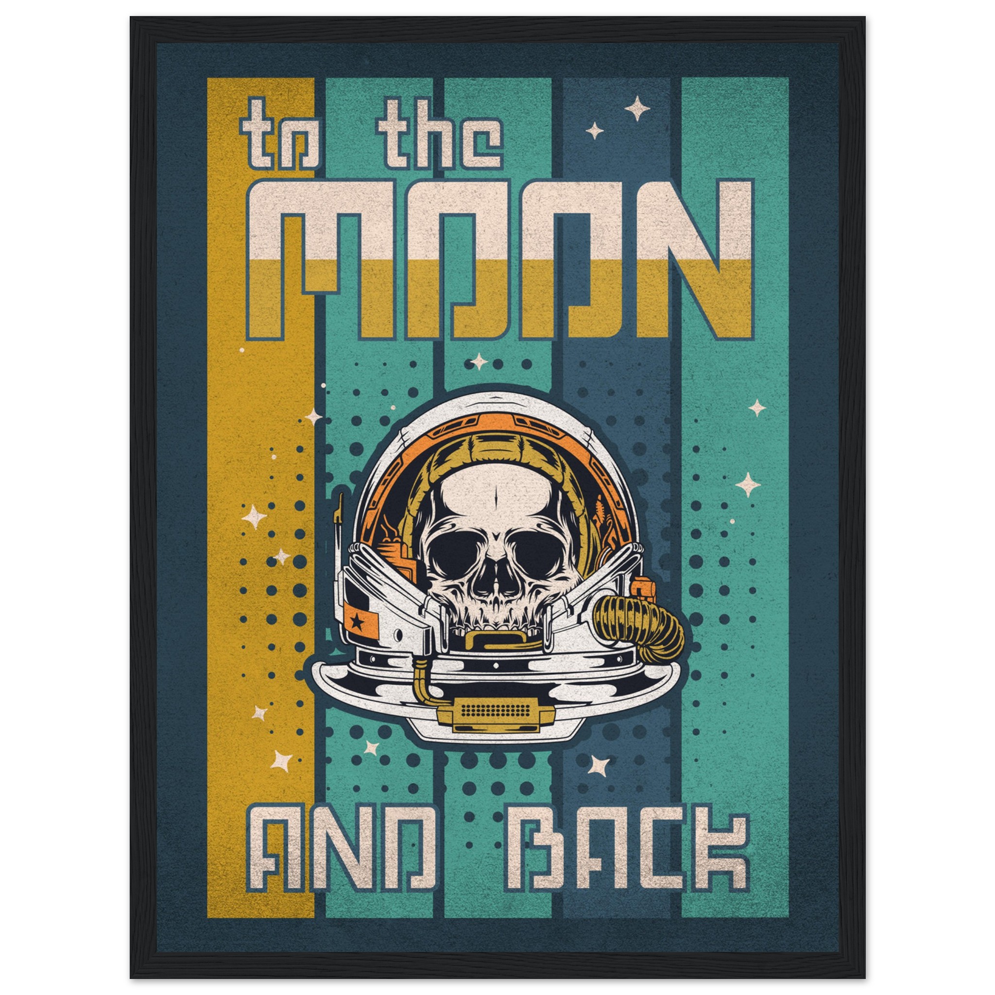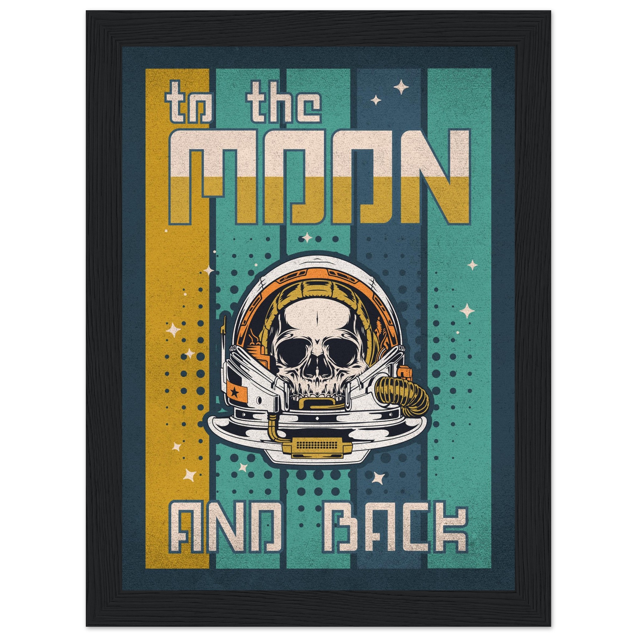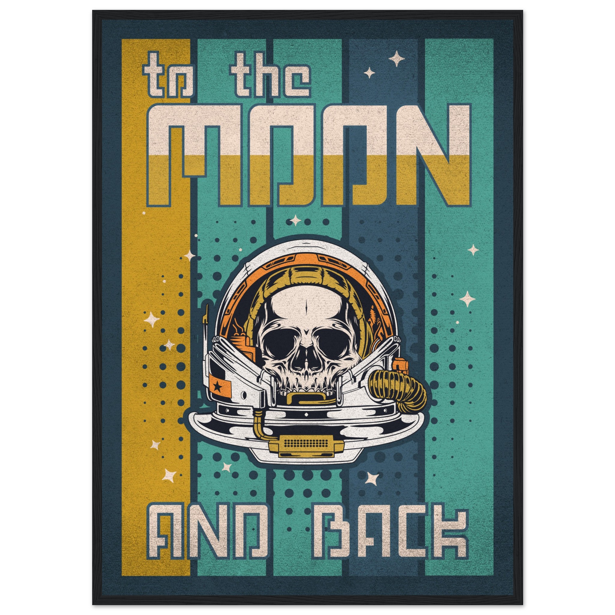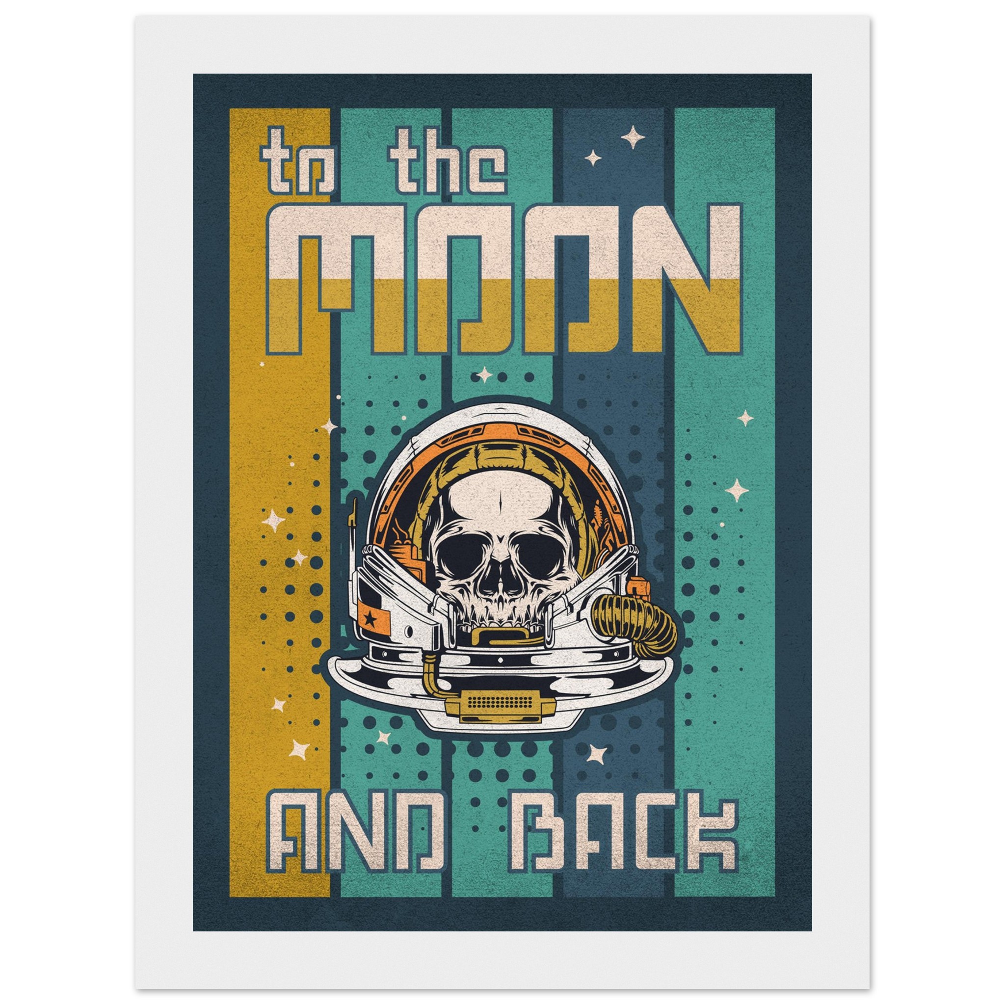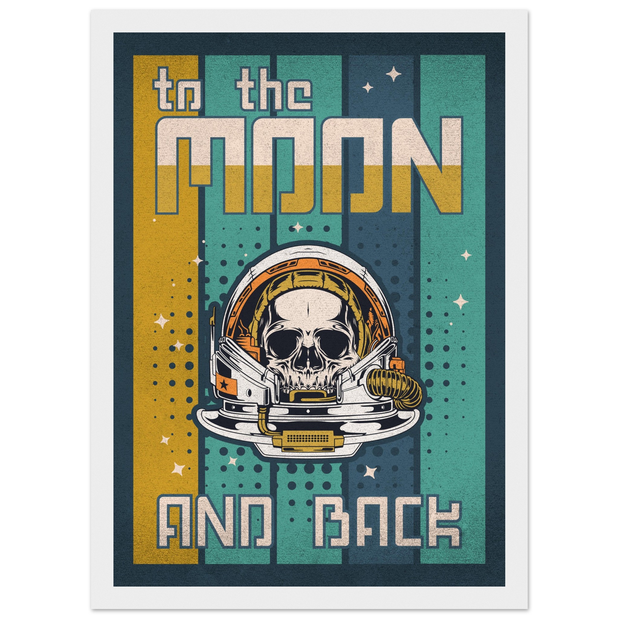 Denna unika och tankeväckande affisch med texten ”To the Moon and Back” kombinerar rymdutforskningsteman med en oväntad skalle inuti en astronautdräkt, vilket ger en dystopisk eller alternativ vändning på klassiska rymdäventyr. Designen leker med kontrasten mellan liv och död, utforskning och det okända, och presenterar en djärv grafisk stil som kompletteras av en retrofärgpalett. Detta konstverk skulle kunna vara en diskussionspunkt i alla moderna eller eklektiska inredningar och ett måste för samlare som uppskattar en mörkare estetik.